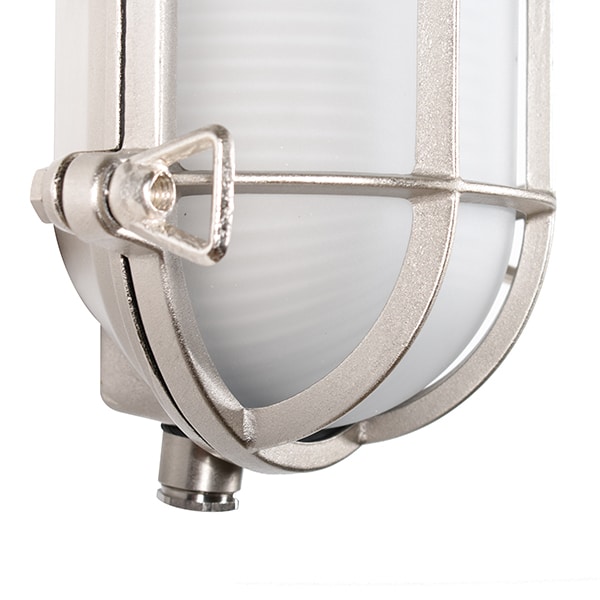 Marin vägglampa i tilltalande design med ett vackert galler och muttrar som blir till fina detaljer. Vägglampan är gjuten i solid mässing med mattförnickling och har ett glas som är frostat. Mässing lämpar sig också bra i kustmiljöer där salthalten är högre i luften, då är mässing ett bra alternativ! Robust och hållbar vägglampa som även passar på ett modernt hus eftersom den är så tidlös i designen.