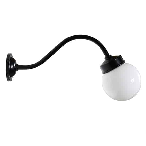 Gårdslykta Arvid 45 grader med mattsvart rör och fästen. Runt opalglas som är 18cm i diameter.