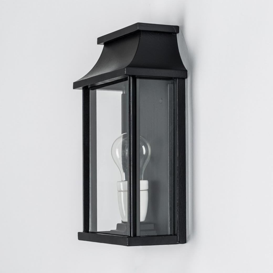 Tidlös vägglykta. Klassisk och stilren modell, passar utrymmen där man inte vill ha ut belysningen för mycket från väggen. Handarbetad modell med svart lack. Passar många olika stilar allt ifrån klassisk till new england stilen.