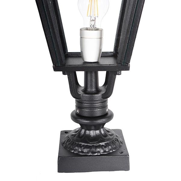 Vi har klassisk infartsbelysning både i det lättare gjutna materialet aluminium och även i det robusta tyngre materialet gjutjärn. Denna belysning är handgjuten i solid aluminium vilket gör den lätt att montera. Den beständiga pulverlacken i tidsenlig svart matt färg gör att den har ett mycket gott skydd och att den är underhållsfri gillar många, dessutom rostar inte denna grindlampan. Glaset är äkta och ger ett fint sken i mörkret vid infarten eller på grindstolpen. En riktig klassiker som står sig i tiden! Lampan har IP nummer 23 och är CE-märkt. Lampansockeln är i porslin och har fattning E27.
