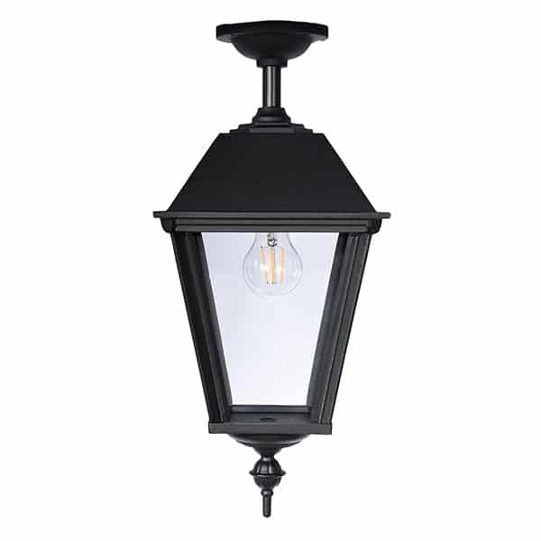 Lyktan är tillverkad i solid handgjuten aluminium, vilket gör denna lykta lätt att fästa på taket. Vår lykta i kedja är pulverlackerad två omgångar för bästa skydd, med matt svart struktur-färg, för en gammaldags genuin känsla. Denna klassiska lampa är omtyckt då materialet ej gör att den rostar och att den är så underhållsfri, en vägglykta för generationer. Klassisk lykta är vacker belysning på din veranda eller altan.