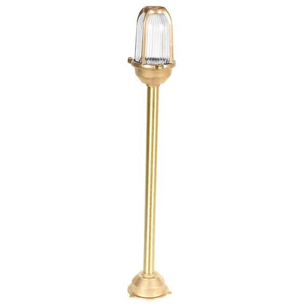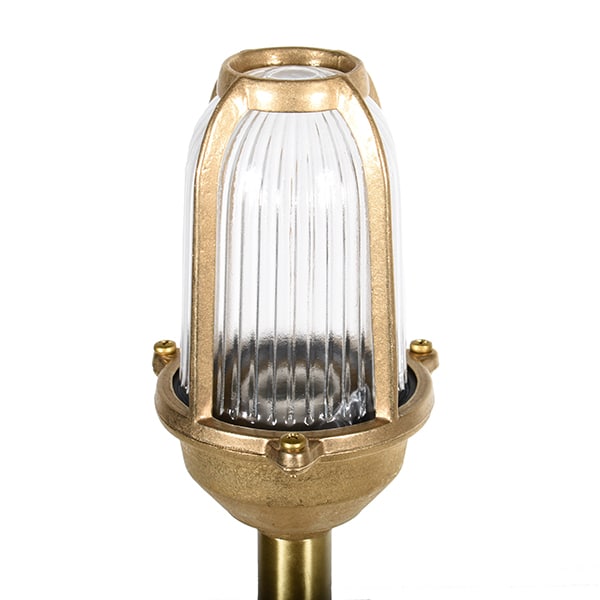 Vacker mässing pollare trädgård som passar på många ställen, i ett trädgårdsland, garage-uppfarten, utedäcket eller i gräsmattan. Pollaren ger en härlig marin känsla och passar även vid kusten, eftersom den är tillverkad i mässing som är ett mycket tåligt material. Det klara glaset ger ett vackert sken och pollaren har en precis lagom höjd för placering på många olika ställen för att få en fin ljus-effekt i trädgården. Den fina mässings färgen lyser verkligen upp vackert och pollaren känns väldigt exklusiv!