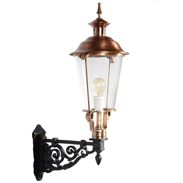 Utebelysningen är tillverkad i solid handgjuten aluminium, vilket gör denna armatur lätt att fästa på väggen. Vägglyktan är har ett lock av koppar, mässing på övriga detaljer. Vägglampan är omtyckt då materialet ej gör att den rostar och att den är så underhållsfri, en armatur för generationer!