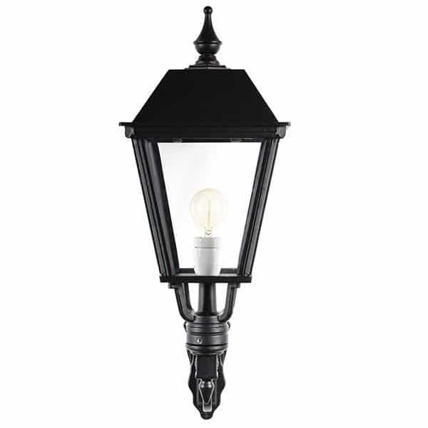 Utebelysningen är tillverkad i solid handgjuten aluminium, vilket gör denna armatur lätt att fästa på väggen. Vägglyktan är pulverlackerad två omgångar för bästa skydd, med matt svart struktur-färg, för en gammaldags genuin känsla. Vägglampan är omtyckt då materialet ej gör att den rostar och att den är så underhållsfri, en armatur för generationer!
