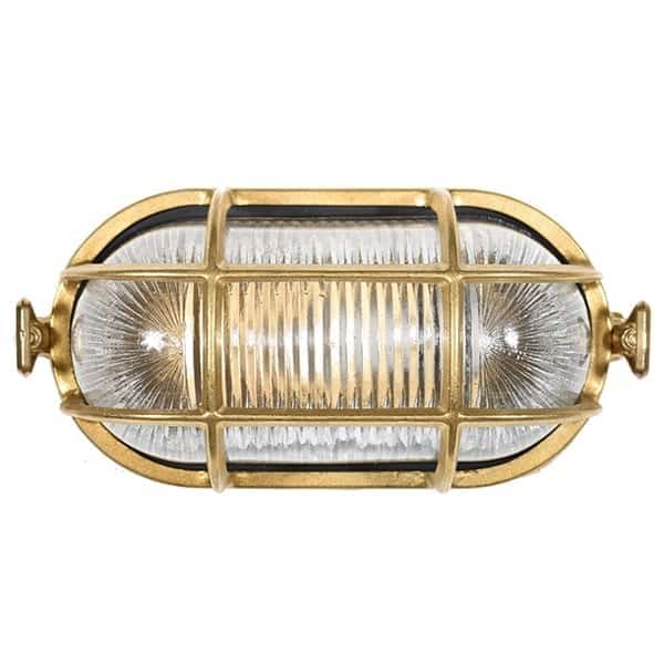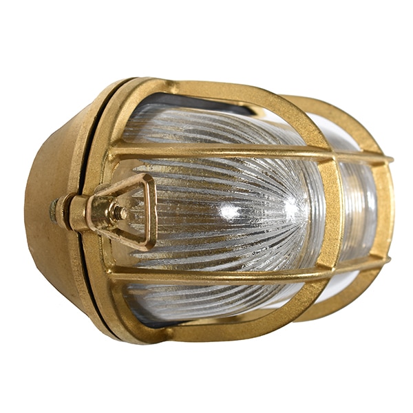 Väggbelysning i marin stil, solid gjuten mässing, vacker utomhusbelysning. Ger ett behagligt ljussken genom lampans glas. Denna lampa är också utrustad med ett lampgaller för en liten extra detalj. Glaset är klart men finns även i frostat. Väggbelysningen passar såväl till din utegård eller poolområdet eller varför inte tuff belysning till din sommarstuga eller husfasad.