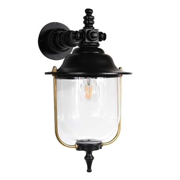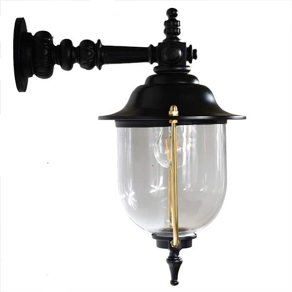 Vår vägglampa är tillverkad i ett gediget material och är helgjuten i aluminium. Designen är hämtad efter förlagor från sekelskiftet, vilket ger en tidlös stil som man inte tröttnar på. En fasadbelysning som passar så väl slott som koja.