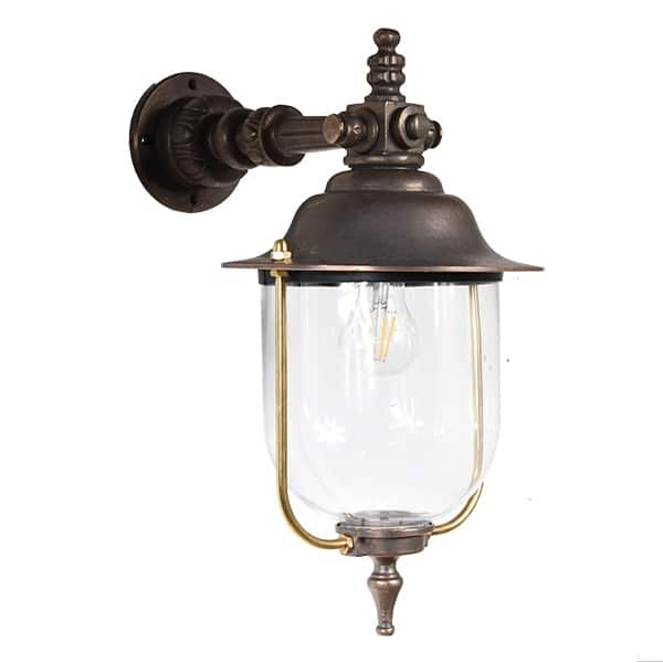Utebelysningen är tillverkad i solid handgjuten mässing, vilket gör denna armatur lätt att fästa på väggen. Vägglyktan är mkt lämplig vid kustmiljö med hög salthalt i luften. Vägglampan är omtyckt då materialet ej gör att den rostar och att den är så underhållsfri, en armatur för generationer!